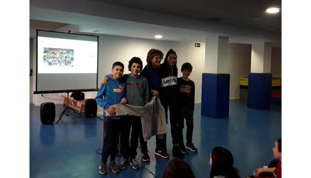 Con motivo del día 8 de marzo, el alumnado de 3º ciclo del Colegio Público Koldo Mitxelena de Errenteria, ha recibido la visita de Reyes Carrere y han participado en un coloquio sobre Mujer y Deporte. Los alumnos y alumnas del centro han aprovechado la ocasión para invitar a Carrere a la Fiesta de la Escela pública que se llevará a cabo en Errenteria el día 2 de junio bajo el lema Makina bat taupada.