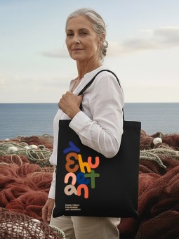 Bolsa negra de la Fiesta de la Escuela Pública Vasca con logo en color.